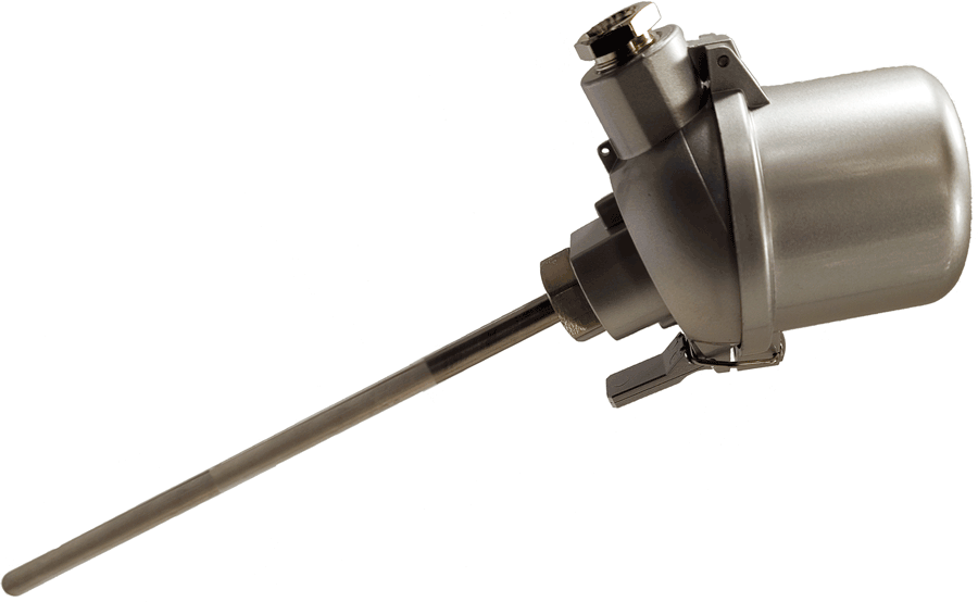 Termoelement K (NiCr-Ni), Termotråd ø 1,5mm, Følerrør i højildfast stål (W 1.4841), Plads til transmitter i låget, Leveres med 1/2″ klemringsforskruning.