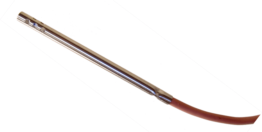 Temperaturføler med ledning, med perforeret åben spids for hurtig reaktion.
