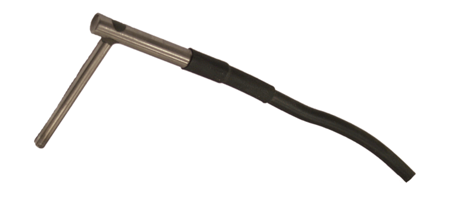 Temperaturføler med ledning i vinkeludførsel, hvor tilslutningsledning sidder vinkelret på følerrøret. Velegnet ved begrænset plads eller til indbygning i værktøj.