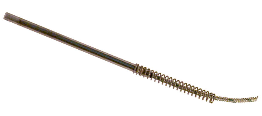 Temperaturføler med ledning og aflastningsfjeder, som beskytter tilslutningsledningen, mod knæk og brud ved installationer i bevægelse.