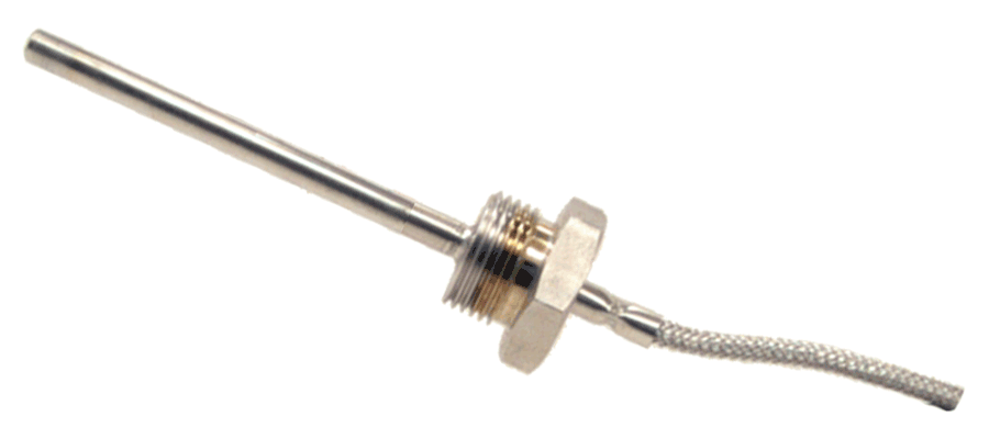 Temperaturføler med ledning og påsvejst gevind for montage.